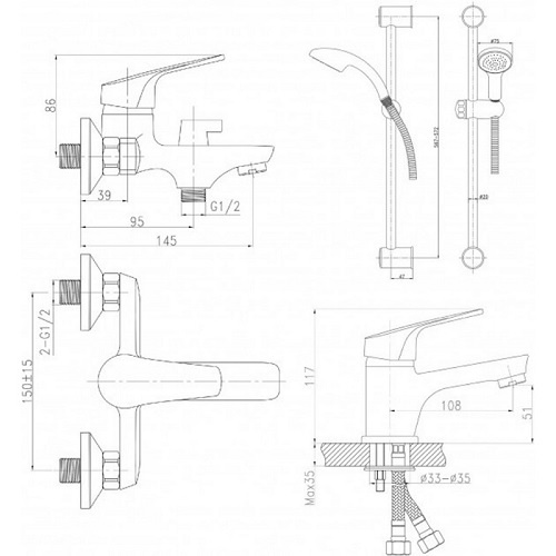 Набір змішувачів для умивальника, ванни и Душова стійка Q-tap Set CRM 35-111