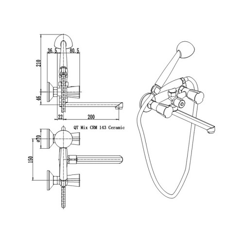 Змішувач для ванни Q-tap Mix CRM 143