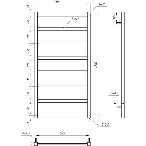 Сушка для рушників водяна Genesis Aqua Lono 1000х530 GA2802