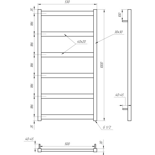 Сушка для рушників водяна Genesis Aqua Minimal 1200х530 GA6003