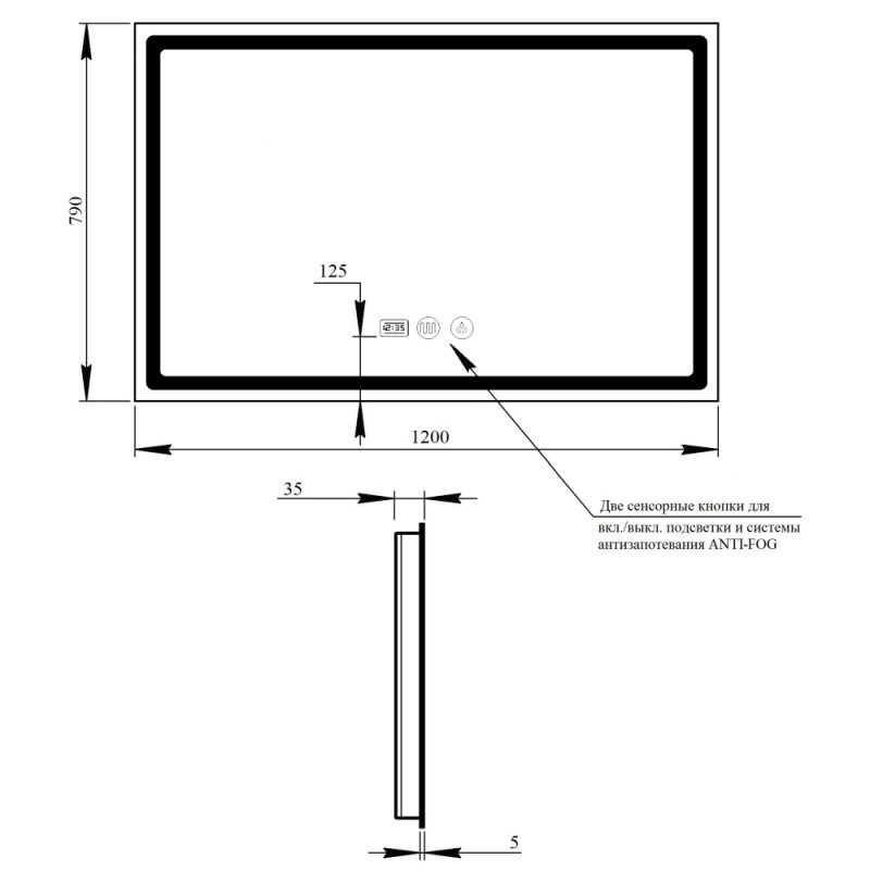 Дзеркало з підсвічуванням і незапотіванням Q-tap Mideya LED DC-F613 1200*800